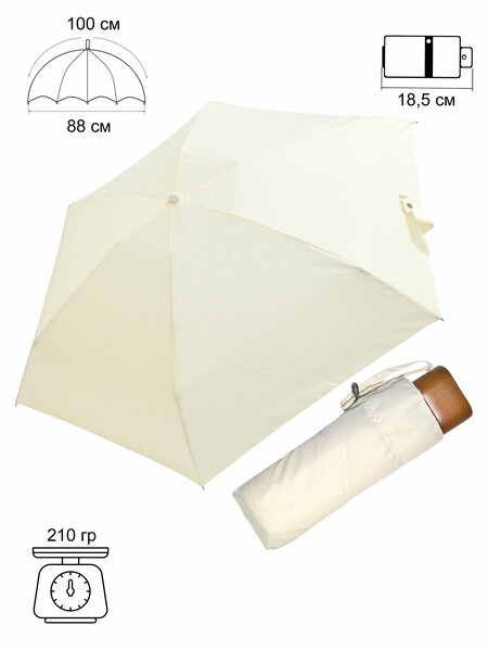 Супер легкий зонт Ame Yoke M-52-5S в 5 сложений, легкий, всего 210 гр и компактный, его длина в сложенном виде всего 18,5 см, это зонт поместится даже в небольшую дамскую сумку или в дверцу автомобиля и в случае непогоды всегда будет под рукой. Зонт выполнен из высококачественного алюминия и углеволокна нового поколения, поэтому зонт легкий, но при этом надежный, а благодаря тому, что купол зонта имеет тефлоновую пропитку, капли воды не задерживаются на куполе, а скатываются и зонт не протечет, даже при сильном дожде и быстро высохнет после, а так же, пропитка предохранит зонт от быстрого выцветания. Чехол зонта имеет глубокую молнию, которая позволяет легко доставать и убирать зонт после использования. Кроме того, зонт Ame Yoke M-52-5S имеет ручку из натурального дерева, которую приятно держать в руке. Зонты Ame Yoke, это зонты традиционно высокого японского качества, изготовленные с учетом последних разработок японских инженеров.