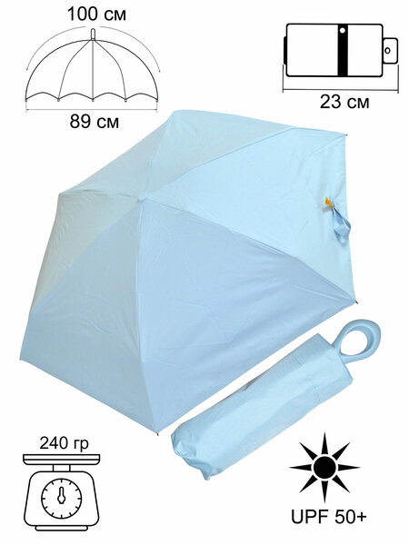 Зонт женский — механика 5 сложений 6 спиц, длина спицы 50 см Длина в сложенном состоянии — 23 см Купол 89 см Материал купола - Полиэстер с тефлоновой пропиткой UPF 50+ (солнцезащита) Каркас — сталь, фиберглас Ручка — пластик Вес - 240 гр Двухсторонний механический зонт Ame Yoke M50-5S в 5 сложений. Зонт выполнен из стали, и углеволокна нового поколения, благодаря чему, зонт имеет легкую, но прочную конструкцию. Для купола используется полиэстер с тефлоновой пропиткой и защитой от ультра фиолетовых лучей UPF 50+, это легкая и надежная ткань, капли воды не задерживаются на ней, а скатываются и зонт не протечет, даже при сильном дожде и быстро высохнет после, а так же не выгорает на солнце. Ручка выполнена из прорезиненного нескользящего пластика, приятная на ощупь и удобная в использовании.