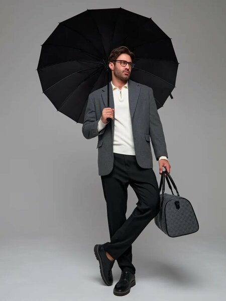 Самым прочным из всех зонтов считается . Главным преимуществом такого аксессуара считается большой купол по сравнению с другими моделями и элегантность дизайна. Зонт-трость могут служить дополнительной опорой при ходьбе. Имеют более округлые купола, которые позволяют воде быстрее скатываться, а значит и быстрее сохнут. Зонты-трости имеют более прочные спицы, которые выдерживают значительные ветровые нагрузки. Прекрасно подходят к деловому стилю одежды. Зонты в виде трости пользуются наибольшей популярностью у мужчин. Они прочны, качественные модели не выворачиваются наизнанку даже при сильном ветре. Особой надежностью отличаются фасоны с системой "антиветер" и удлиненным куполом. Мужской зонт-трость является стильным аксессуаром и помимо практичной функции обладает декоративным эффектом. Благодаря удобству использования, солидному внешнему виду и простой конструкции трости пользуются высокой популярностью среди мужчин разного возраста и статуса. Зонт-трость представляет собой прочную конструкцию, состоящую из минимального количества элементов – стержня, декоративной ручки и каркаса из спиц. В отличие от других моделей трости очень редко выворачиваются наизнанку от сильного ветра и имеют более долгий срок эксплуатации. Прочные и крупные спицы выполнены из нержавеющей стали и крепко держат всю конструкцию. Помимо защиты от дождя и снега, зонт-трость является ярким акцентом образа мужчины и указывает на его безупречный вкус и статус. Аксессуар выступает в роли стильного дополнения гардероба и делает его обладателя более солидным. Классический черный, клеточный зонт с крюкообразной рукоятью идеально подойдёт к традиционному мужскому костюму строгого фасона, двубортному плащу либо демисезонному пальто, выполненному в «честерфилде» и других английских стилях. Ещё одним преимуществом трости является ее внешний вид. Элегантный, строгий и классический, он идеально подойдёт для рабочего или официального образа, ничуть не портя собой общее впечатление