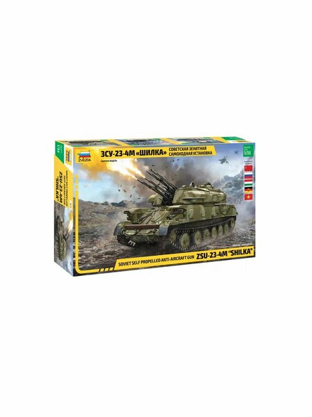 ЗСУ-23-4 «Шилка» - советская зенитная самоходная установка, вооруженная счетверённой автоматической 23-мм пушкой АЗП-23 «Амур», предназначенная для прикрытия войск во всех видах боя и на марше от ударов самолетов, вертолетов, крылатых ракет. Поступив на вооружение в 1965 г, ЗСУ-23-23-4 неоднократно модернизировалась. В 1973г. создали новую модификацию ЗСУ-23-4М, в которой были усовершенствованы пушки и механизм подачи, повышена надежность СУВ и ресурс ГТА. Обновленная машина получила имя «Бирюса», но в обиходе все равно оставалась «Шилкой». ЗСУ-23-4 состояла на вооружении армий 41 страны мира и подтвердила свою высокую эффективность в реальных боях. Сборные модели от производителя ZVEZDA развивают кругозор детей, сборка позволяет узнать технические особенности современной и исторической военной техники. Сборные коллекционные модели танков, самолетов и другой военной техники для детей, для взрослых - это увлекательное занятие, позволяющее погрузиться в увлекательный мир истории воин и создания военной техники. Сборная модель — это идеальный подарок для мальчиков и мужчин, увлеченных историей и моделированием. Конструктор представляет собой новый набор сборочную модель Звезда для детей и взрослых. Этот набор может стать впечатляющим подарком на любой праздник. Конструктор сборная модель танка самолет корабль машины подходит для детей старше 7 лет, этот конструктор станет интересным развлечение и обучающим инструментом. Это также отличный подарок для мужчин, увлекающихся военной техникой и историей. Мужья и мальчики оценят такой мужской, оригинальный подарок. Этот подарочный набор может стать незабываемым подарком на день рождения или Новый год.