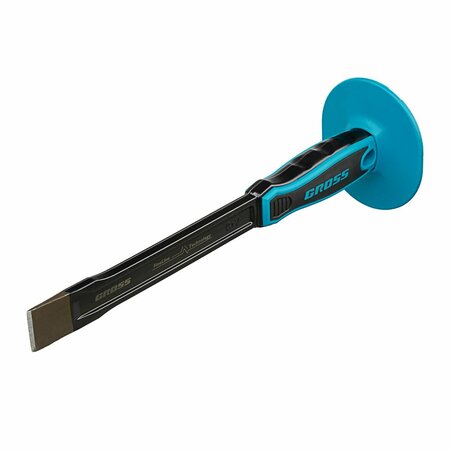 Зубило-скарпель Gross 18712, 300 х 25 мм-1 дюйм, рассчитано на работу с камнем, кирпичом, металлом, бетоном. Оно используется скульпторами и строителями для штробления и обработки поверхностей и конструкций. Зубило относится к ручному режущему инструменту, работающему под ударным воздействием молотка или киянки, имеет наиболее распространенную форму. ПреимуществаПолотно изготовлено из хромованадиевой стали, а рабочая часть закалена до 56-62 HRC, поэтому зубило отличается прочностью и стойкостью к механическим нагрузкам. Защитная эмаль предотвращает образование коррозии и разрушение зубила. Зубило оснащено протектором для предотвращения случайного попадания молотком или киянкой по руке. Двухкомпонентная рукоятка эргономичной формы не проскальзывает в руке и препятствует усталости даже при длительном использовании зубила.