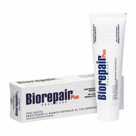 Зубная паста Biorepair Pro White Plus эффективно уничтожает пигментные пятна и загрязнения эмали, возвращая зубам природную чистоту и блеск. При этом зубная паста Biorepair Plus Pro White обладает низкой абразивностью, что обеспечивает безопасную и щадящую чистку зубов. Преимущества зубной пасты Biorepair Pro White Plus Содержит активный отбеливающий запатентованный полимер VPV (поливинил параллидон), который покрывает микропленкой поверхность зубов, препятствуя воздействию красящих веществ пищи и напитков. Уничтожает налет, предотвращая развитие зубного камня. В пасте содержатся биометрические частицы microRepair, которые по составу идентичны гидроксиапатиту – веществу, из которого состоит зубная эмаль. Эти частицы заполняют микротрещины эмали, восстанавливая её структуру. Подходит для применения беременным и кормящим женщинам, детям старше шести лет. Паста рекомендована после процедуры отбеливания. Использовать 2-3 раза в день. Паста не содержит Фтор; Парабены; Диоксид титана; Лаурилсульфат натрия (SLS)