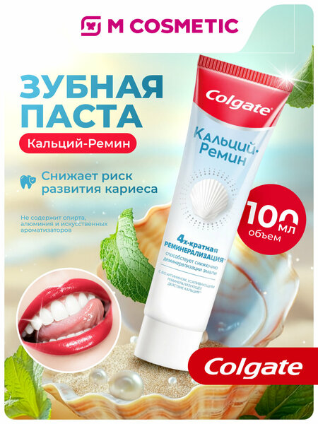 Зубная паста Colgate Кальций-Ремин 100мл - это эффективное средство для ухода за полостью рта, разработанное немецкой компанией Blend-a-med. Зубная паста Colgate Кальций-Ремин борется с налетом и бактериями, защищая десны и сохраняя свежесть дыхания в течение всего дня. Уникальная формула с системой "Кальци-стат" способствует поступлению естественного кальция и минеральных элементов в состав зубной эмали, что помогает восстановить ранние кариозные поражения. Зубная паста Colgate Кальций-Ремин содержит технологию Ремин-Демин, которая помогает встраивать в эмаль натуральный кальций из состава слюны благодаря действию фторида. Это способствует снижению деминерализации эмали и возвращает здоровый уровень рН баланса. Зубная паста Colgate Кальций-Ремин подходит для ежедневного применения и профилактической чистки. Она антибактериальная, подходит для самостоятельной чистки и не содержит спирта, искусственных ароматизаторов, алюминия, хлорных отбеливателей и синтетических ароматизаторов. Зубная паста Colgate Кальций-Ремин имеет объем 100 мл и срок годности 24 месяца с даты изготовления, указанной на упаковке.