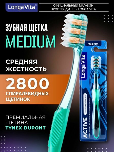 Зубная щетка Longa Vita Active: эффективная и комфортная чистка Зубная щетка Longa Vita Active с разноуровневыми щетинками средней жесткости обеспечивает эффективное очищение зубного налета и деликатный массаж десен. Спиралевидная щетина премиум класса: Уникальная технология посадки щетины позволяет безболезненно и безопасно массировать десны, а утонченные кончики с легкостью проникают в труднодоступные места. Противоскользящие вставки на ручке: Противоскользящие вставки на ручке щетки гарантируют полный контроль процесса чистки, обеспечивая комфорт во время использования. Подходит для самостоятельной чистки: Зубная щетка Longa Vita Active предназначена для самостоятельной чистки зубов и не требует использования зубной пасты. Зеленый цвет и упаковка-блистер: Зубная щетка имеет стильный зеленый цвет и упакована в удобный блистер, что делает ее отличным выбором для подарка. Возрастные ограничения: Зубная щетка Longa Vita Active подходит для использования детьми старше 10 лет. Выбирайте зубную щетку Longa Vita Active для качественной и комфортной чистки зубов, и ваши десны будут вам благодарны!
