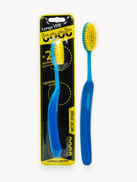 Зубная щетка Longa Vita TOOT: бережное и эффективное очищение зубов Увеличенная головка щетки обеспечивает максимальный охват поверхности зуба. В 2 раза больше щетинок, чем у обычной зубной щетки. Щетина премиум класса Tynex DuPont. Тщательно отполированные кончики щетины бережно удаляют налет. Зубная щетка Longa Vita TOOT обеспечивает мягкое и эффективное очищение зубов благодаря своей щетине премиум класса Tynex DuPont с тройной полировкой кончиков. 6500 щетинок обеспечивают более тщательное и глубокое очищение, в то время как увеличенная головка щетки позволяет охватить большую поверхность зубов. Эргономичная прорезиненная ручка гарантирует полный контроль процесса чистки и предотвращает скольжение щетки в руке. Зубная щетка Longa Vita TOOT изготовлена из пластика, что обеспечивает прочность и долговечность продукта. Выбирая зубную щетку Longa Vita TOOT, вы получаете качественный и надежный продукт, который обеспечит вам и вашей семье здоровую и белоснежную улыбку.
