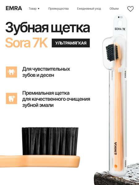 Зубная щетка для чувствительных зубов Sora 7K от EMRA, ультрамягкая